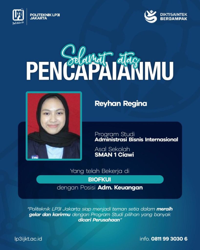 #LP3IJakarta #PoliteknikLP3IJakarta #KampusVokasi #SiapKerja #AlumniLP3I #KisahSukses #DIKTISAINTEKBERDAMPAK #ManajemenInformatika #AdministrasiBisnisInternasional #KomputerisasiAkuntansi